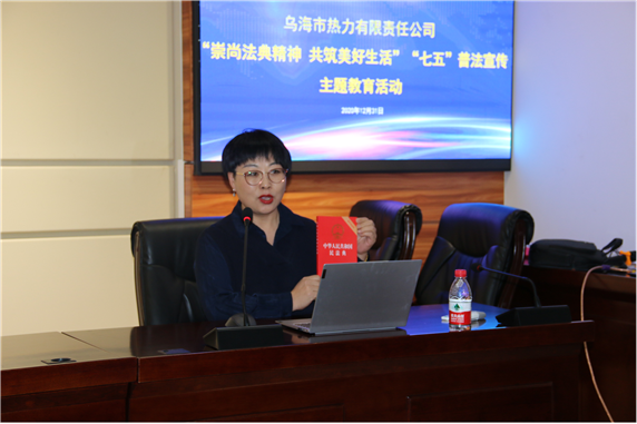 為了更好地普及法律知識,總結(jié)公司“七五”普法工作,進(jìn)一步提升公司職工的法律意識,12月31日下午,烏海市熱力有限責(zé)任公司開展“崇尚法典精神 共筑美好生活”“七五”普法宣傳主題教育活動。熱力公司領(lǐng)導(dǎo)班子成員、環(huán)節(jié)干部、機關(guān)全體工作人員、窗口全體工作人員、分公司客服人員近100余人參加活動,活動特邀烏海市濟海侓師事務(wù)所楊海嵐律師做民法典重點內(nèi)容解讀。