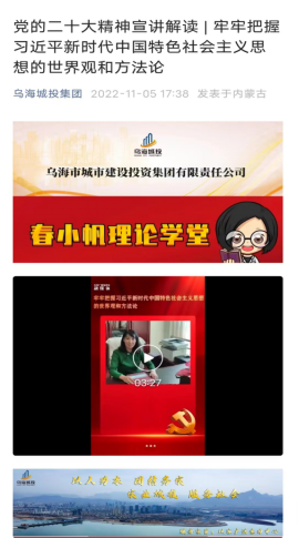 高舉旗幟、凝聚力量、團結奮進, 黨的二十大為新時代新征程黨和國家事業(yè)發(fā)展、實現(xiàn)第二個百年奮斗目標指明了前進方向、確立了行動指南。連日來,烏海市城市建設投資集團有限責任公司(以下簡稱“市城投集團公司”)各級黨組織把學習宣傳貫徹黨的二十大精神作為當前和今后一個時期的首要政治任務,加強組織領導,周密謀劃安排,掀起了學習宣傳貫徹黨的二十大精神熱潮。