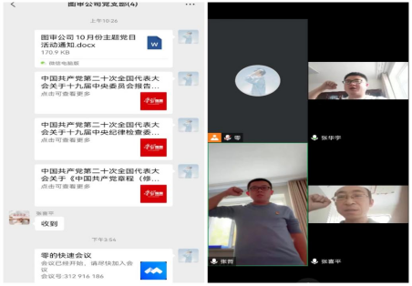 10月24日下午,集團(tuán)公司機(jī)關(guān)黨支部全體黨員、入黨積極分子共40名同志通過騰訊會(huì)議APP采取線上形式召開主題黨日活動(dòng)。會(huì)議線下主會(huì)場由集團(tuán)公司閉環(huán)管理的12名黨員和積極分子組成,與線上的全體黨員首先進(jìn)行了主題黨日的前四項(xiàng)規(guī)定動(dòng)作,奮戰(zhàn)在抗疫一線的同志們帶領(lǐng)大家奏唱國歌、重溫入黨誓詞、領(lǐng)誦黨章、主動(dòng)繳納黨費(fèi)。之后,集團(tuán)公司黨委書記郝關(guān)峰,黨委委員、紀(jì)委書記張永東領(lǐng)學(xué)了《中國共產(chǎn)黨第二十次全國代表大會(huì)關(guān)于十九屆中央委員會(huì)報(bào)告的決議》《中國共產(chǎn)黨第二十次全國代表大會(huì)關(guān)于十九屆中央紀(jì)律檢查委員會(huì)工作報(bào)告的決議》《中國共產(chǎn)黨第二十次全國代表大會(huì)關(guān)于中國共產(chǎn)黨章程(修正案)的決議》。集團(tuán)公司機(jī)關(guān)黨支部書記喬娜通報(bào)了本次疫情防控工作相關(guān)情況。