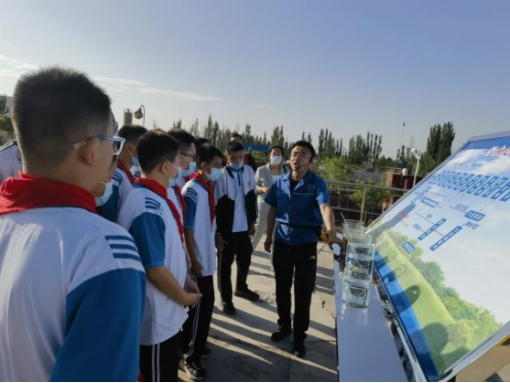 市污水處理公司黨支部把“書記項目”與污水處理“公眾開放日”相結(jié)合,通過開展開放日活動,普及和宣傳節(jié)約用水、保護(hù)水資源環(huán)保理念。6月7日,市污水處理公司與烏海市第二中學(xué)聯(lián)合開展一次別開生面的“公眾開放日”活動,烏海市第二中學(xué)學(xué)生參加本次活動?;顒又?,市污水處理公司水處理工段段長李帥,圍繞污水處理工藝、流程、運(yùn)行狀況、出水水質(zhì)排放標(biāo)準(zhǔn)以及廠區(qū)各構(gòu)筑物和設(shè)備的工作原理進(jìn)行細(xì)致講解。隨后,帶領(lǐng)同學(xué)們實(shí)地參觀了氧化溝、二沉池等污水處理重要構(gòu)筑物,幫助同學(xué)們更加直觀清晰了解污水處理工藝流程,零距離體驗污水變清流。