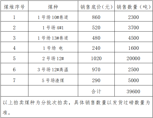 (3)競拍流程:以我公司報(bào)出的煤種銷售競拍價(jià),現(xiàn)場人員舉號(hào)牌報(bào)價(jià),報(bào)價(jià)最高者中標(biāo)。