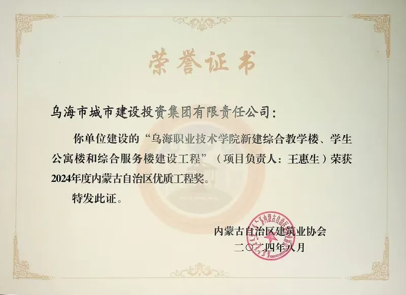喜報!烏海市城建投融資有限責任公司一項目榮獲“2024年度內蒙古自治區(qū)建筑工程優(yōu)質工程獎”