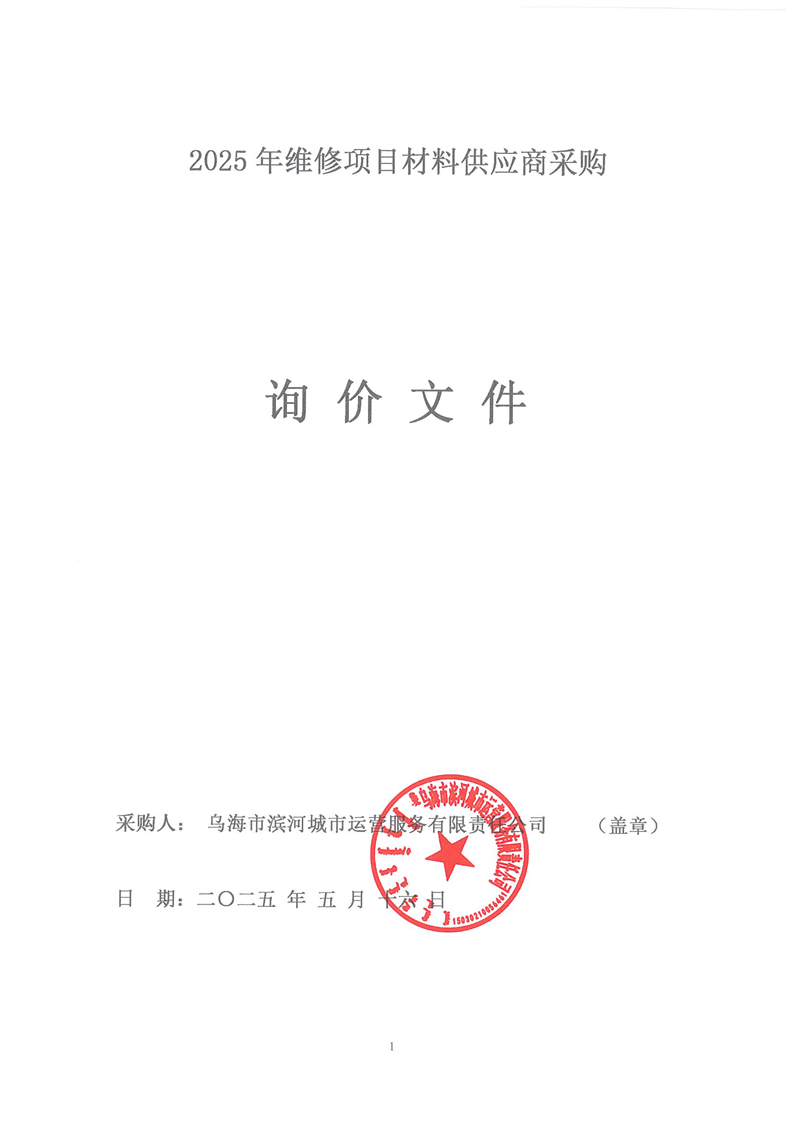 - 2025-11-07烏海市濱河城市運營服務(wù)有限責(zé)任公司中大型電動掃地機(車)供應(yīng)項目詢價文件