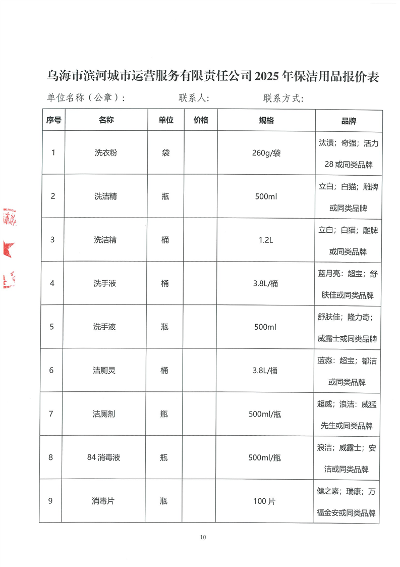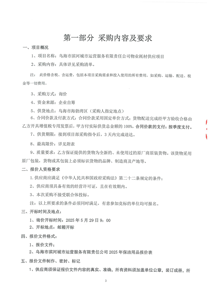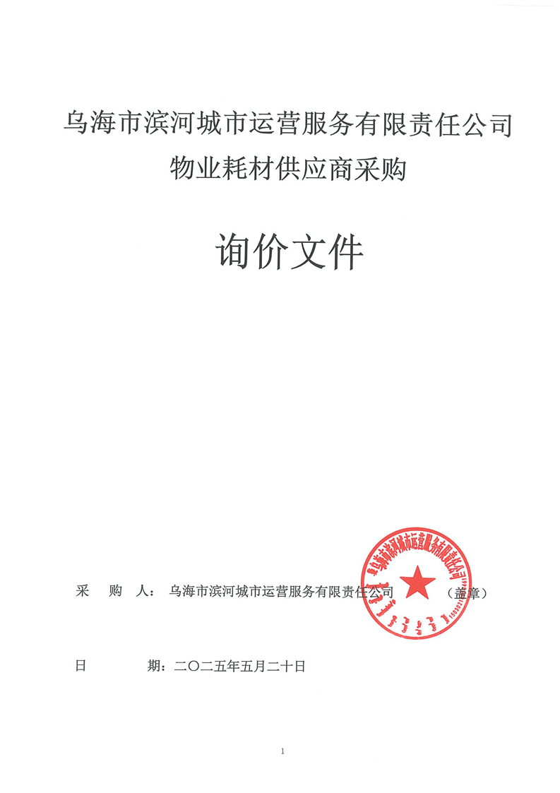 烏海市濱河城市運(yùn)營服務(wù)有限責(zé)任公司物業(yè)耗材供應(yīng)商采購詢價(jià)文件