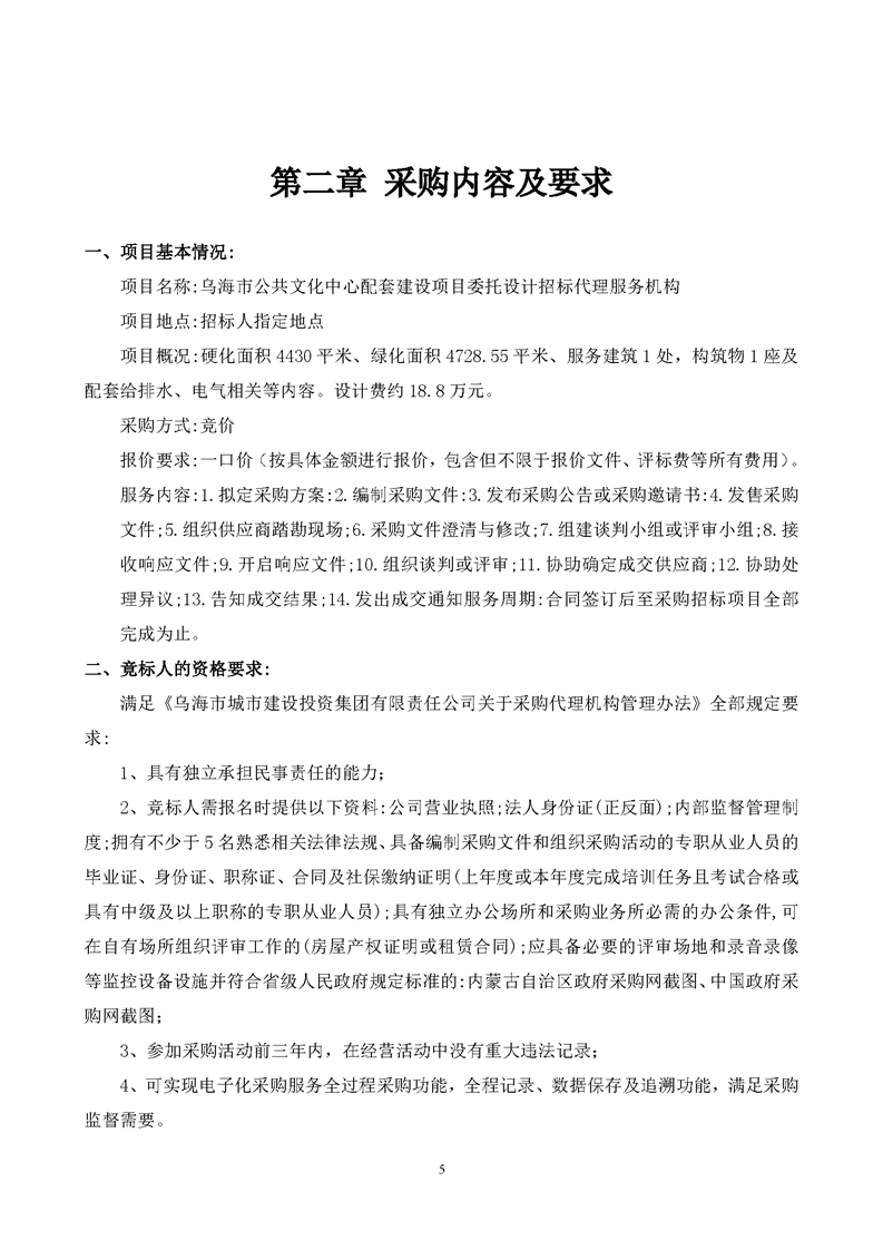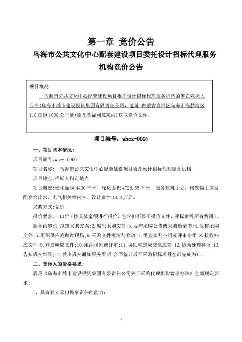 烏海市公共文化中心配套建設(shè)項(xiàng)目委托設(shè)計(jì)招標(biāo)代理服務(wù)機(jī)構(gòu)競(jìng)價(jià)文件