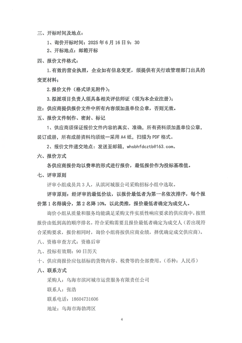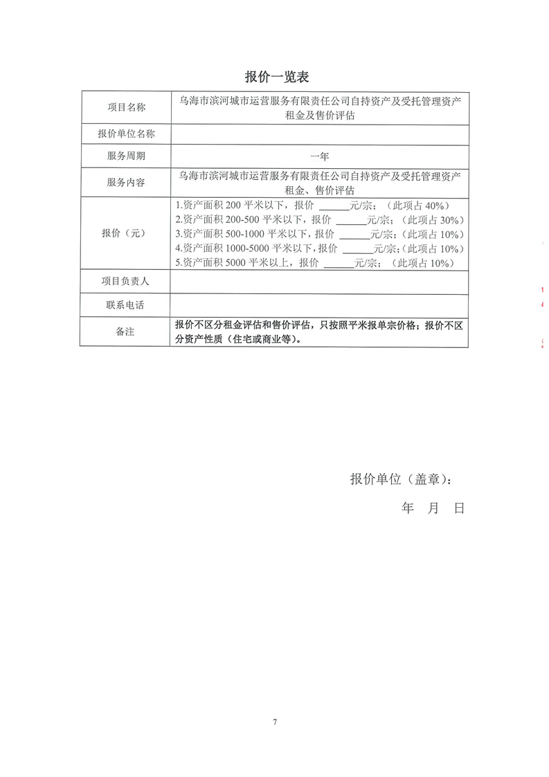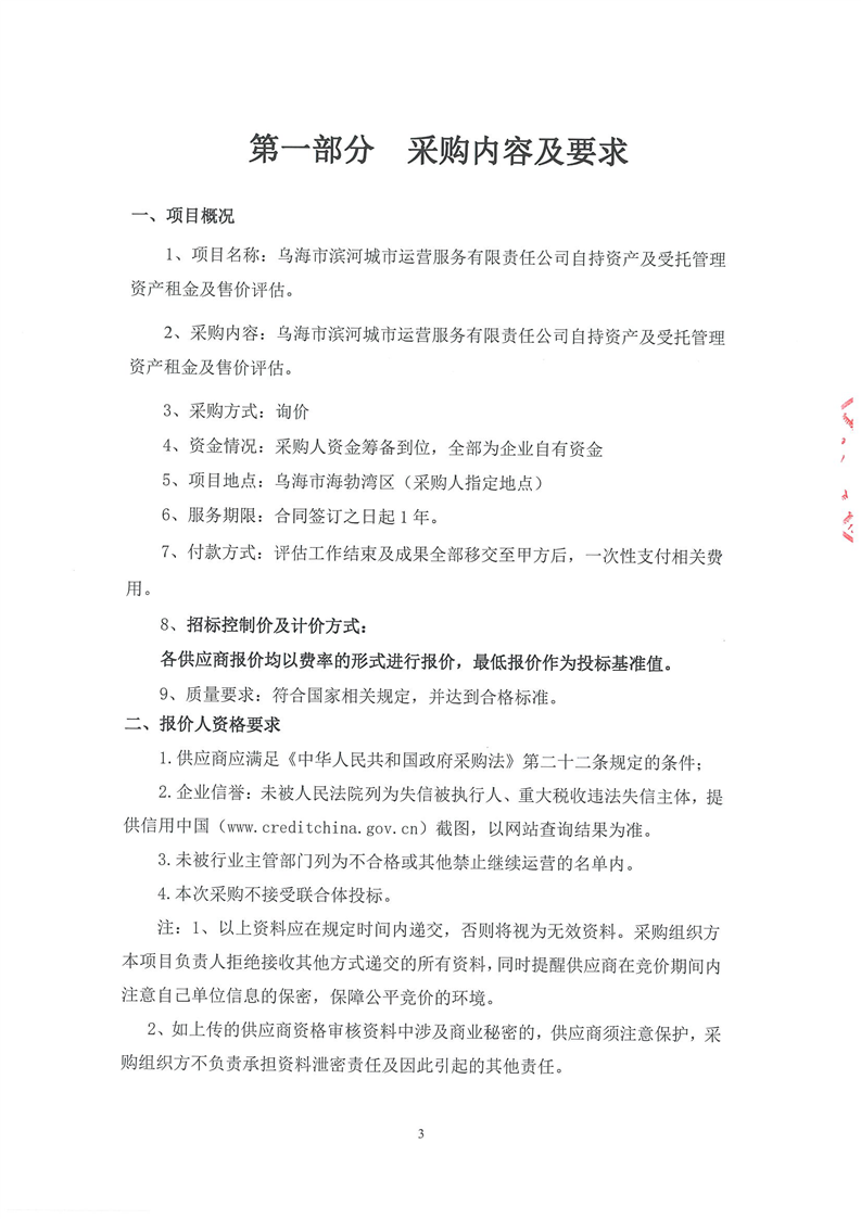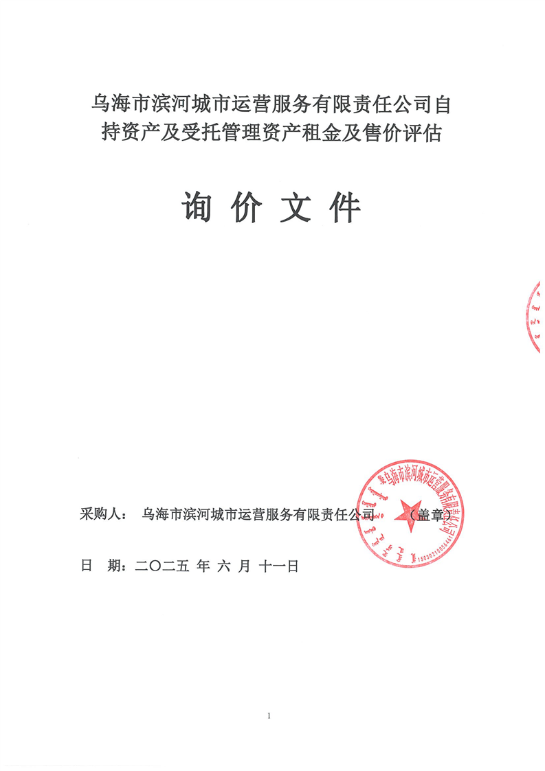 烏海市濱河城市運(yùn)營服務(wù)有限責(zé)任公司自持資產(chǎn)及受托管理資產(chǎn)租金及售價(jià)評(píng)估詢價(jià)文件
