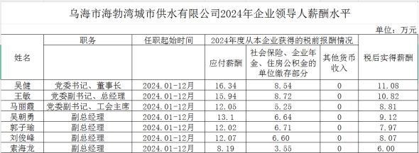 2024年4月15日,根據(jù)《中共烏海市城市建設(shè)投資集團有限責(zé)任公司委員會關(guān)于索海龍同志職務(wù)任免的通知》(烏城投黨發(fā)〔2024〕12號)文件,集團公司黨委決定索海龍同志任烏海市海勃灣城市供水有限公司黨委委員。