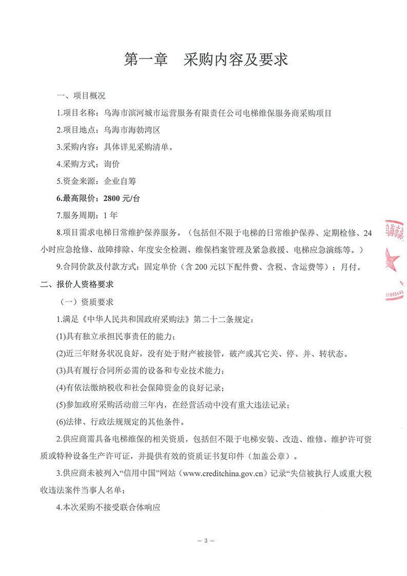 - 2025-11-07烏海市濱河城市運營服務(wù)有限責(zé)任公司中大型電動掃地機(車)供應(yīng)項目詢價文件