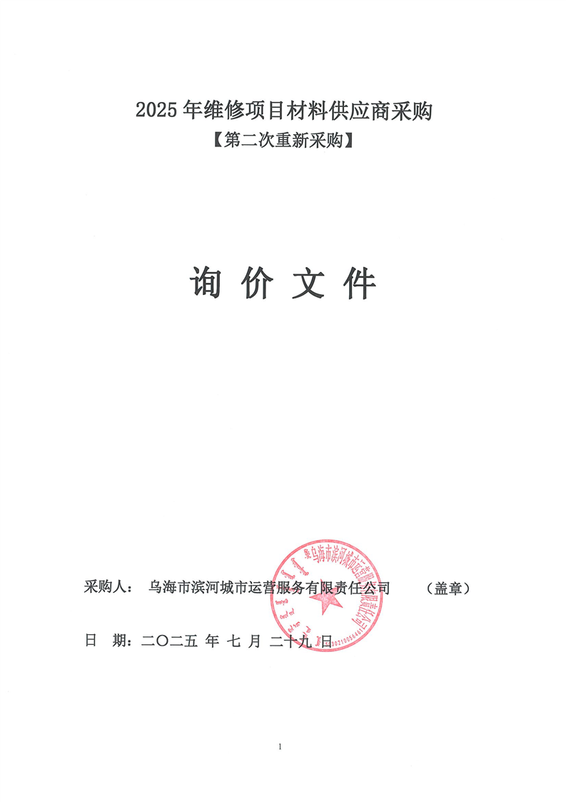 - 2025-11-07烏海市濱河城市運(yùn)營服務(wù)有限責(zé)任公司中大型電動掃地機(jī)(車)供應(yīng)項目詢價文件