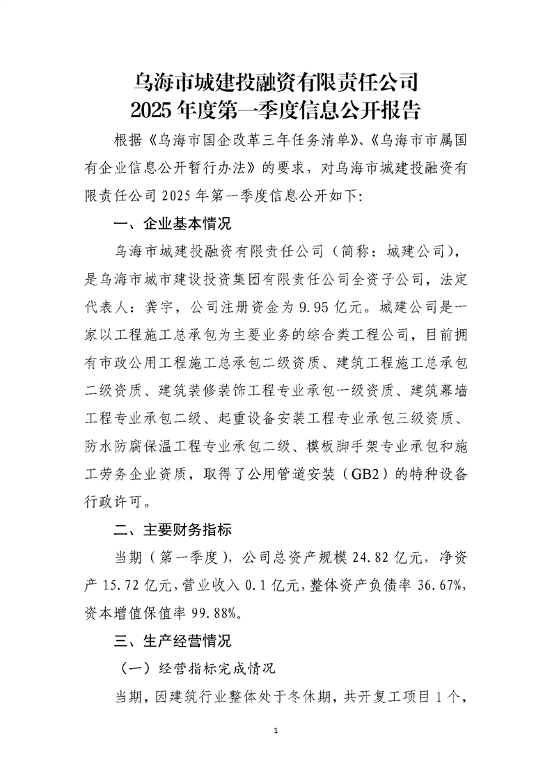 - 2025-07-28烏海市城建投融資有限責任公司2025年度第二季度信息公開