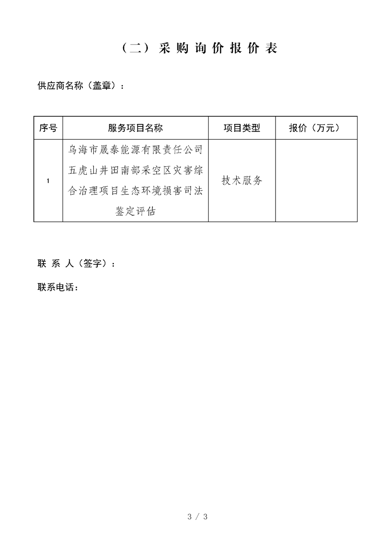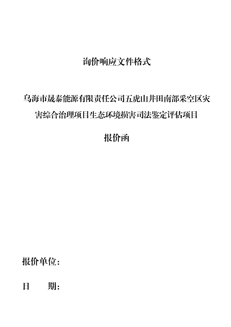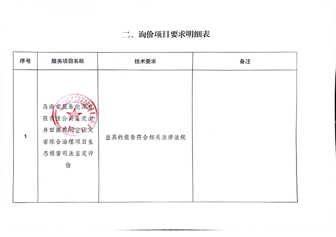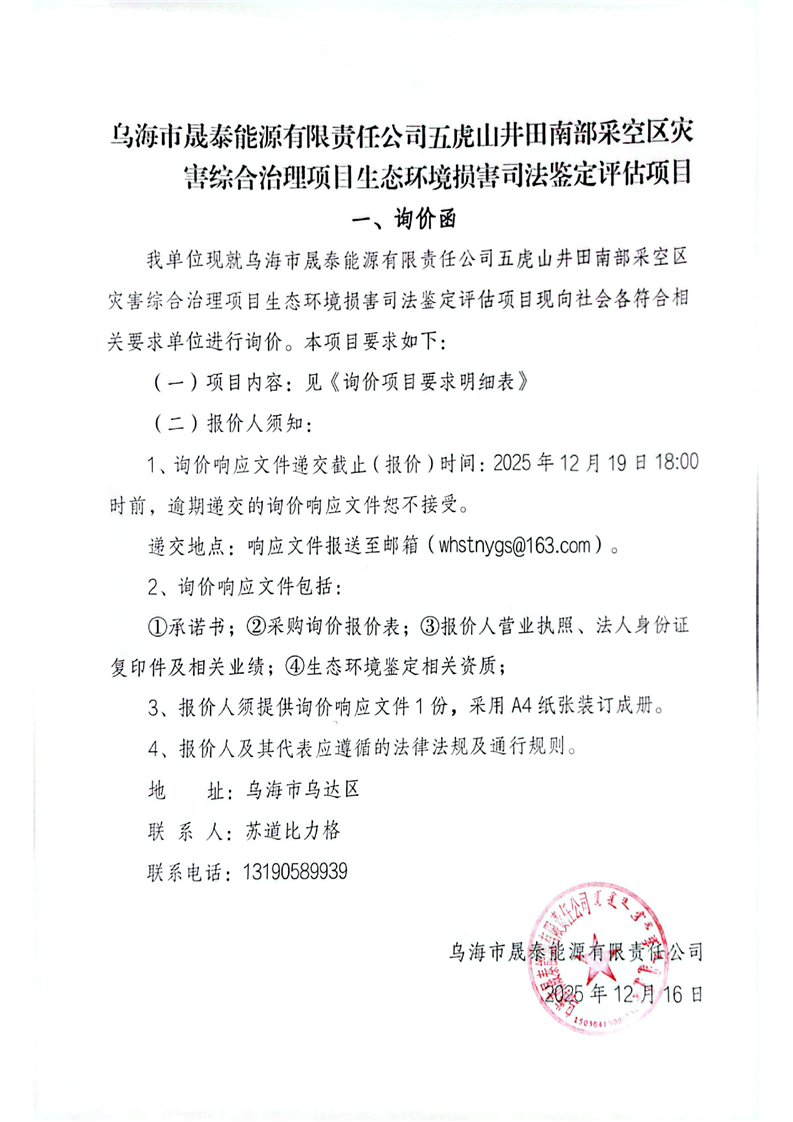 烏海市晟泰能源有限責任公司五虎山井田南部采空區(qū)災害綜合治理項目生態(tài)環(huán)境損害司法鑒定評估項目詢價公告