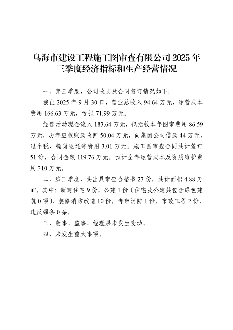 - 2024-10-15烏海市建設工程施工圖審查有限公司2024年第三季度信息公開