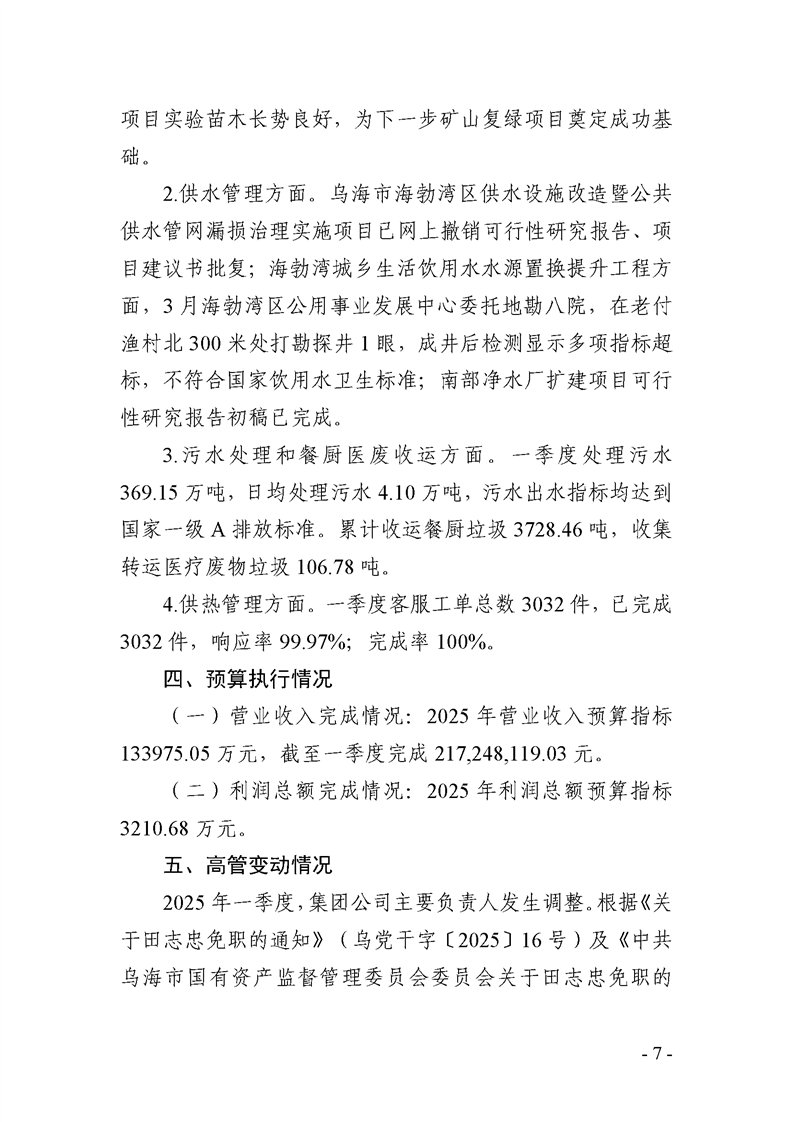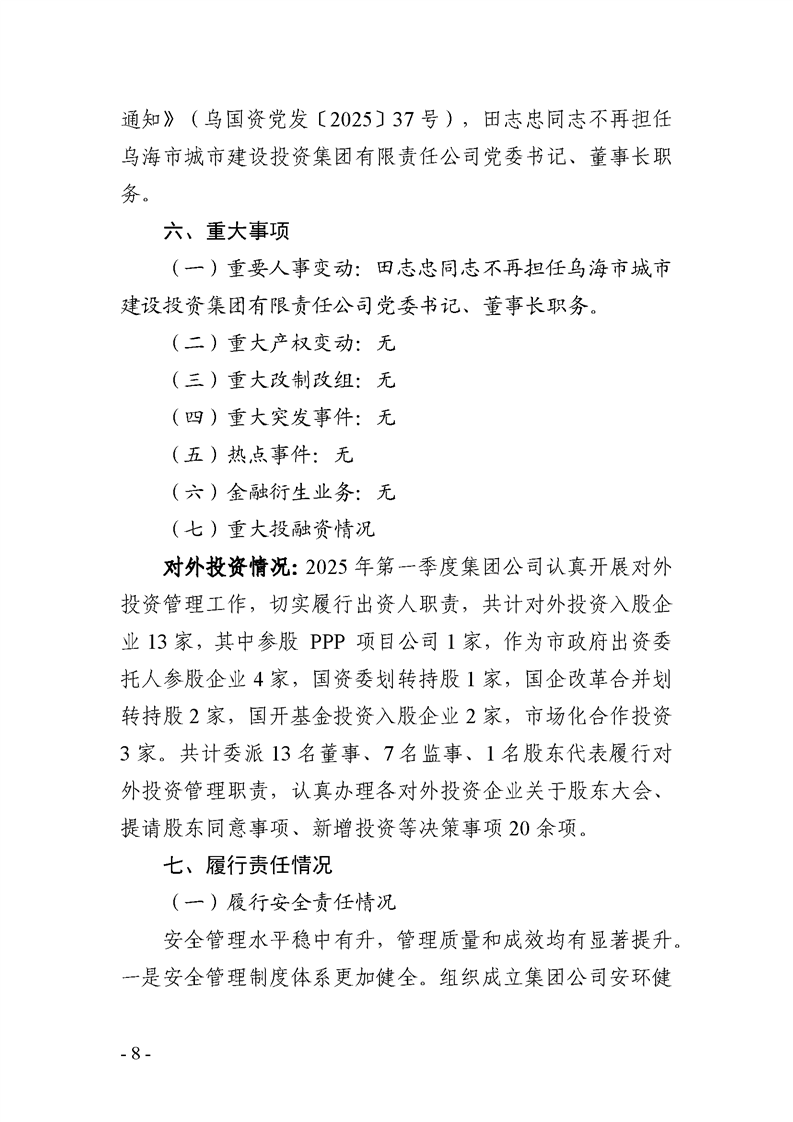 - 2025-07-25烏海市城市建設投資集團有限責任公司 2025年度第二季度信息公開報告