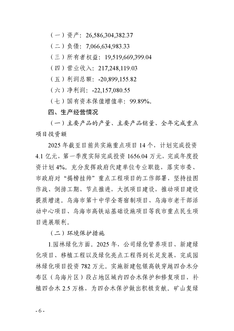 - 2025-10-21烏海市城市建設投資集團有限責任公司 2025年度第三季度信息公開報告