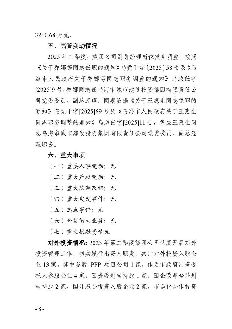 烏海市城市建設(shè)投資集團(tuán)有限責(zé)任公司 2025年度第二季度信息公開報(bào)告