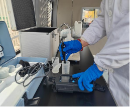 演練現(xiàn)場,水質(zhì)檢測車第一時間奔赴“事故”現(xiàn)場。檢測車配備了先進的檢測設(shè)備,能在短時間內(nèi)對多種水質(zhì)指標進行初步分析,為后續(xù)精準檢測提供方向。抵達現(xiàn)場后,檢測人員迅速行動,他們手持便攜儀器對水源水、出廠水和管網(wǎng)水進行現(xiàn)場檢驗。這些便攜儀器操作簡便、檢測速度快,能快速檢測出pH值、渾濁度、色度、總硬度等關(guān)鍵指標,初步判斷水質(zhì)是否存在異常。檢測人員嚴格按照規(guī)范流程操作,爭分奪秒地獲取檢測數(shù)據(jù),不放過任何一處潛在隱患。